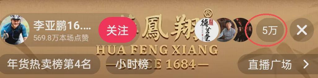 先来看一组直播间数据,李亚鹏直播间热度位列当晚直播第四名,前三名都是平台热门直播间,常年霸榜,只有李亚鹏直播间是热度飙升的一个,但累计热度还是较低,只有300多万,是第三名的一半,观看人数5万。这并不符合热门事件主人公开播的数据,一般来说,焦点人物的首场直播观看人数都会破10万,而李亚鹏最高也只有六七万左右。在开播一个多小时后,人数直接降到3万左右,下降太快。